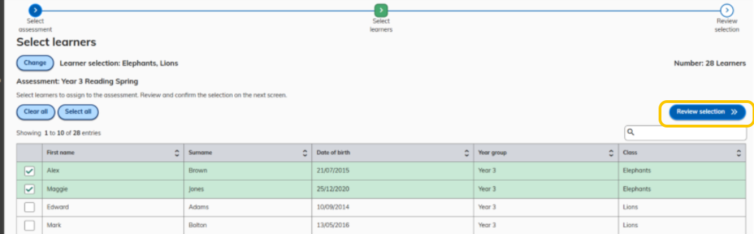 You can add new learners to the assessment at this point before moving to review and confirm learners.